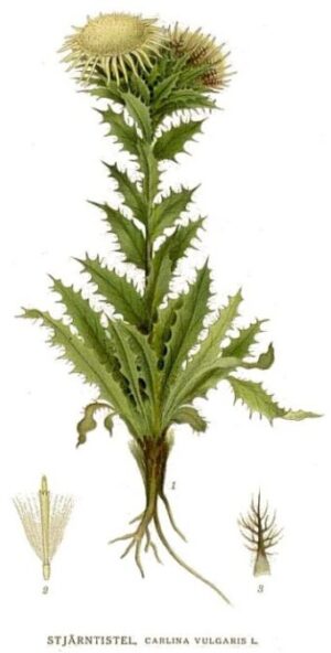 «Όταν ο υγρός αέρας χαϊδεύει τις κεφαλές των ανθέων της Carlina vulgaris, τα ακτινοβόλα βράκτια* κλείνουν σφιχτά γύρω από τα ευαίσθητα εσωτερικά όργανα σαν προστατευτικά χέρια, προστατεύοντας τη γύρη και τα στίγματα από την καταστροφική υγρασία. Αλλά μόλις ο ήλιος στείλει τις θερμαντικές του ακτίνες και ο αέρας στεγνώσει, αυτά τα ασημένια βράκτια ξεδιπλώνονται διάπλατα, για να ανοίξουν σαν ζωντανό δισκοπότηρο στο φως και στους επικονιαστές. Τότε το άνθος αναδύεται με όλη του τη λαμπρότητα, σα να θέλει να διακηρύξει στον κόσμο: Τώρα ήρθε η ώρα της αγάπης και της ζωής».**